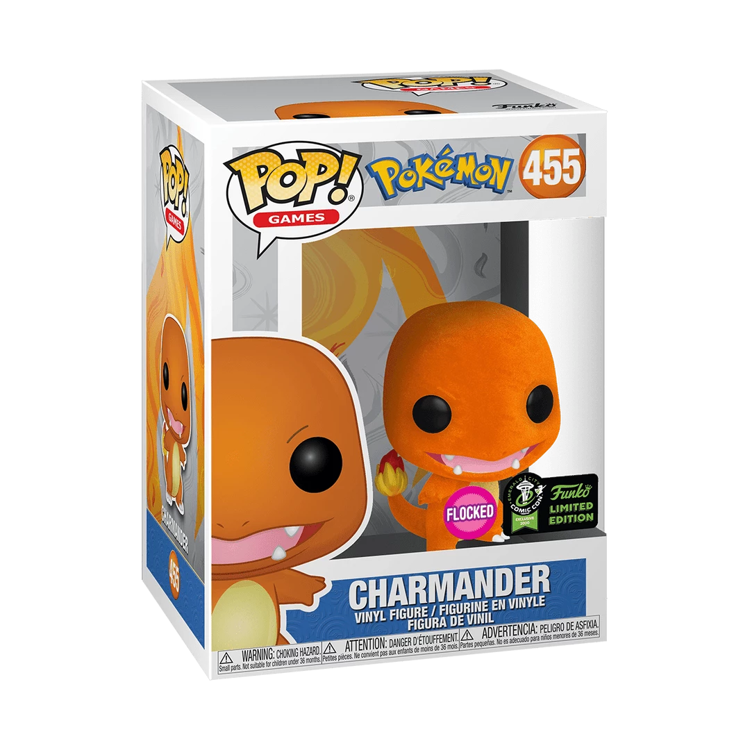 Charmander (Flocked) 455 – Emerald City Comic Con Exclusive  2020 – Funko Pop – Released 2020 – Vaulted