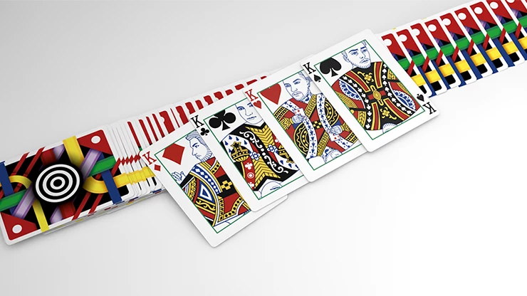 Daniel Schneider (Black Roses Playing Cards, Orbit, Polyantha) and Luke Wadey (Mono-X, Grid, Typographic Playing Cards) played a pivotal role in the life of this deck. Daniel helped bring the visions of the number and court cards to life and is the leader in custom Courts. He proved it again with the six custom Courts in this deck. Luke took my original back design, broke it down and reimagined it, giving it depth and formatting it to an intricate grid; whilst also designing an infinite tuck box design, perfect to the style of the deck.Â