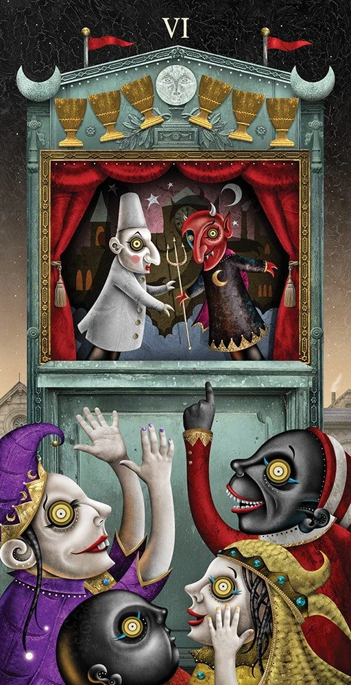 Stylized characters and moonlit dreamscapes draw you into the luminescent world of Deviant Moon Tarot. With larger cards, this special Borderless Edition highlights Patrick Valenza’s stunning artwork and allows readers to connect more deeply with the evocative tarot imagery. Includes 48-page booklet.