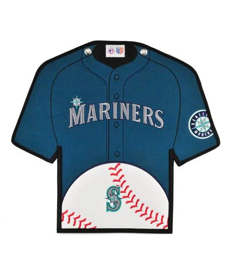 Seattle Mariners Jersey Banner measures 20″ wide by 18″ long, made of wool and professionally embroidere. Has an autograph section for your favorite MLB Mariners player to sign.