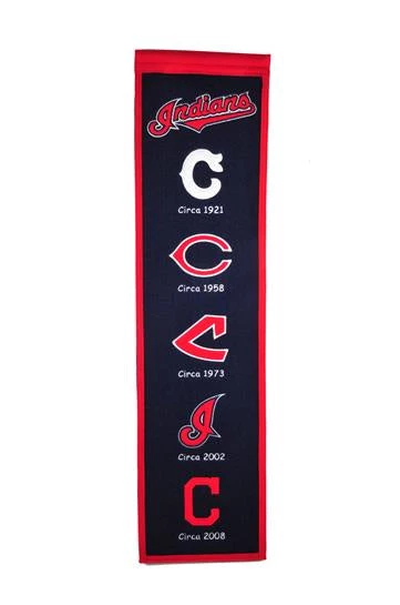 Cleveland Indians Heritage Banner measures 8” wide by 32” long, made of wool and professionally embroidered