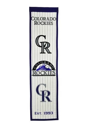 Colorado Rockies Heritage Banner is officially licensed by MLB, made of wool and professionally embroidered. Measures 8” wide by 32” long.