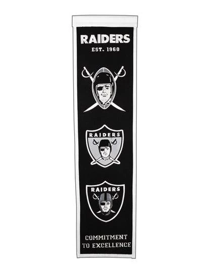 Raiders fans will want this Heritage Banner up on their wall! This officially licensed NFL banner will make a great gift for the Superfan in your house! Measures 8” wide by 32” long, professionally embroidered and made of wool