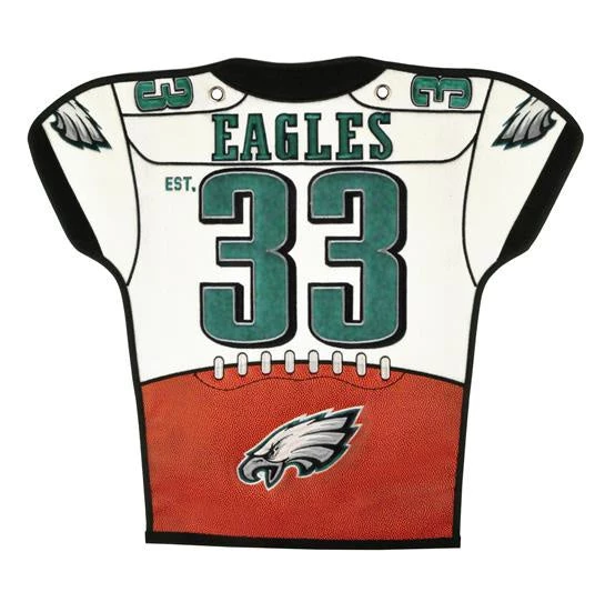 Eagles NFL Football…like no other! Show your pride with this professional Jersey Banner. Measures 20” wide by 18” long. Includes an autograph section for your favorite team player