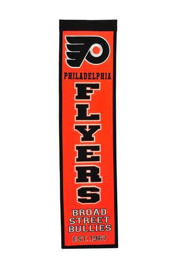 Philadelphia Flyers Heritage Banner measures 8” wide by 32” long, made of wool and professionally embroidered