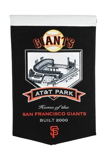 San Francisco Giants ATT Park Stadium Banner measures 15” wide by 24” long, made of wool and professionally embroidered