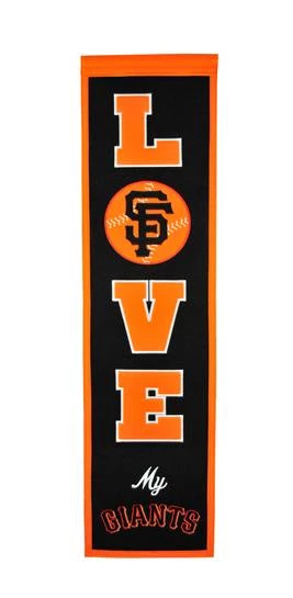 Show some love for this Giants banner! San Francisco Giants MLB Love banner measures 8” wide by 32” long, made of wool and professionally embroidered